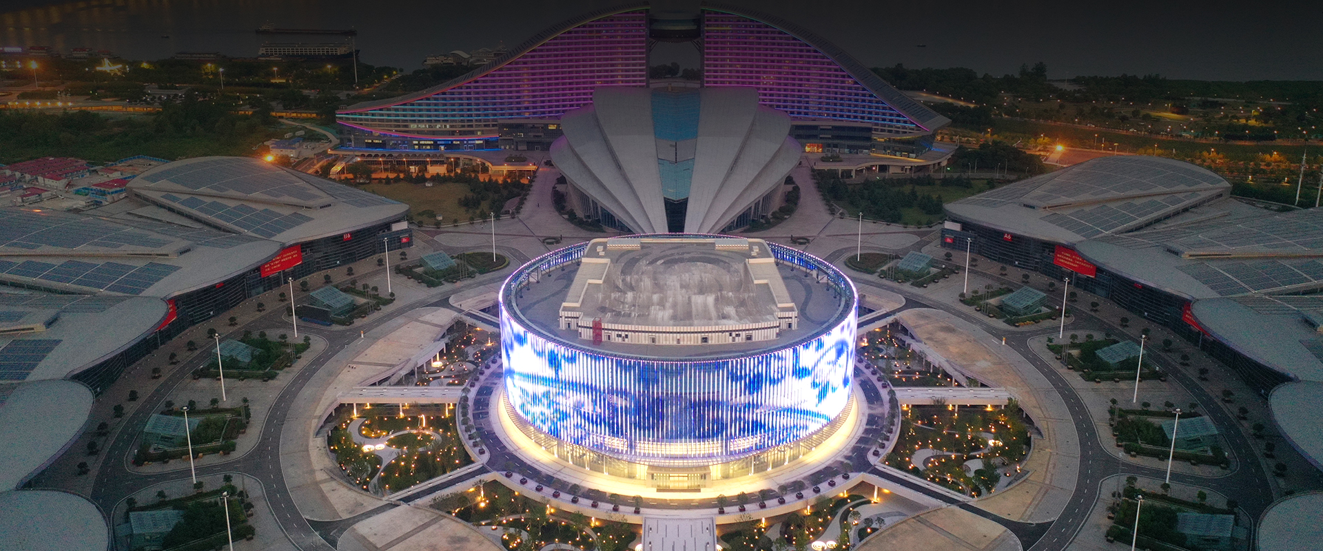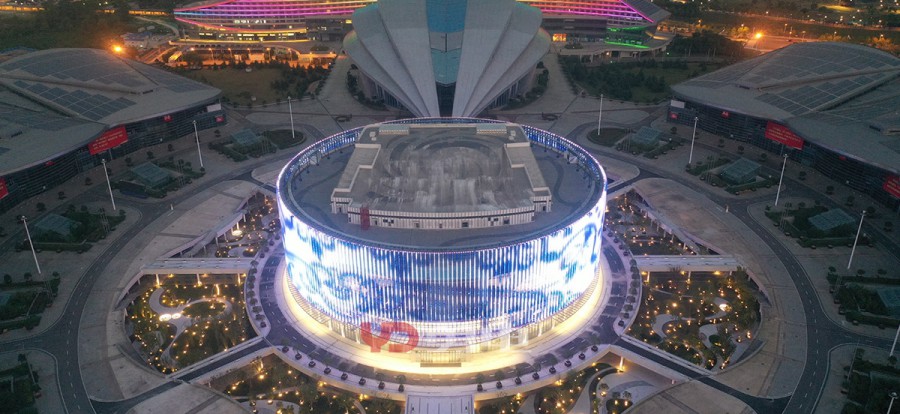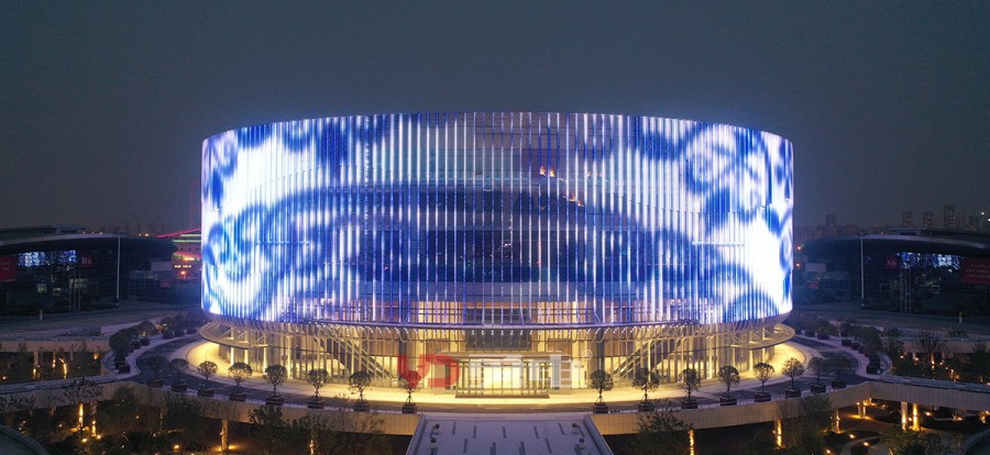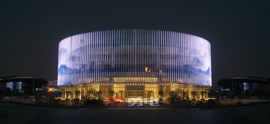 武漢國博會展中心提升工程-漢廳 國際一流的會議中心,為武漢城市會客廳,采用勇電LED燈光,聚焦博覽城中心,突顯地標(biāo)建筑夜景。