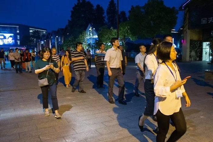 ▲ 領(lǐng)導(dǎo)一行在活動(dòng)方陪同下,參觀園區(qū)內(nèi)燈光作品,逐一了解景點(diǎn)設(shè)計(jì)理念