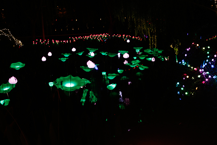 法拉沃造型花燈裝點(diǎn)的池塘夜色,每一處都在釀著各自的魅力。夜晚,在皎白的燈光照耀下,荷花輕盈曼舞,郁金香、馬蹄蓮隨風(fēng)拂動(dòng),五彩斑斕的花燈與嬌嫩的綠意,徜徉于自然的清新空氣中,讓人心曠神怡。