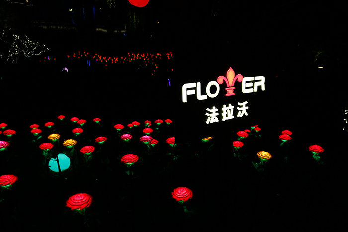 燈光秀路口的植物墻上,勇電旗下品牌-法拉沃各類造型燈光點(diǎn)綴其中,盈盈綠意,點(diǎn)點(diǎn)繁星,仿佛它們本就一體,發(fā)出神秘夢(mèng)幻的光彩。