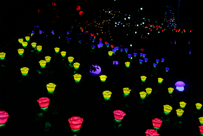 漫步于綠蔭隧道中,看樹(shù)影斑駁,賞藤花繽紛絢爛。由勇電LED燈具打造的夢(mèng)幻長(zhǎng)廊,以門(mén)框的形式體現(xiàn),燈光明暗變化中,顏色也隨之跳動(dòng),如同時(shí)空穿梭、如夢(mèng)如幻...
