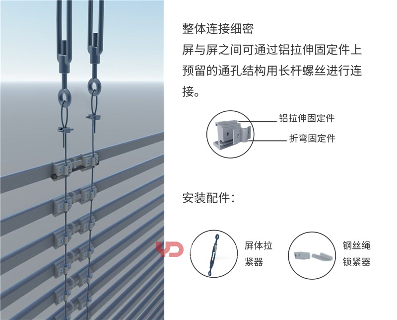 安裝于玻璃幕墻外,對室內(nèi)采光基本無影響,亦可有效減少風阻,提高立面設(shè)備安全性,高樓安裝不受限。