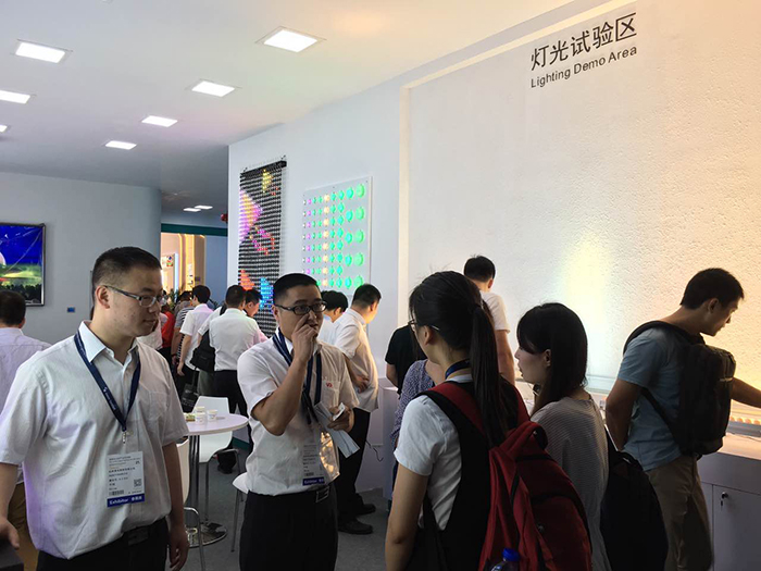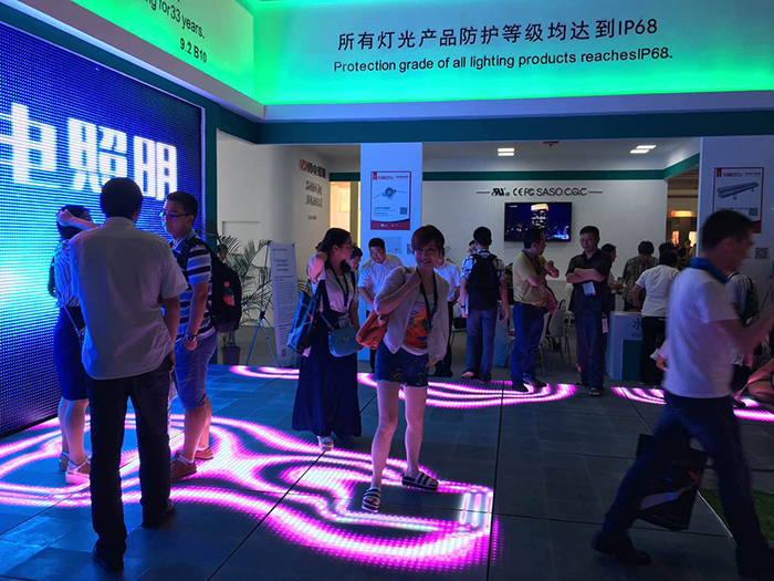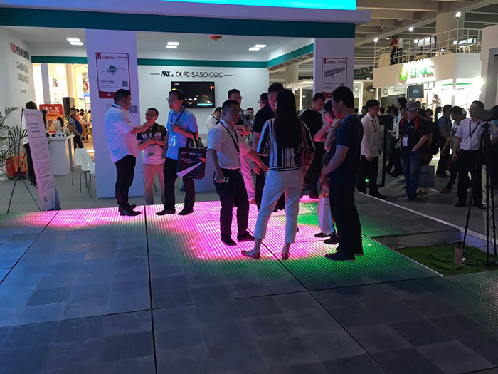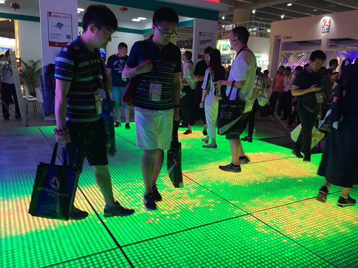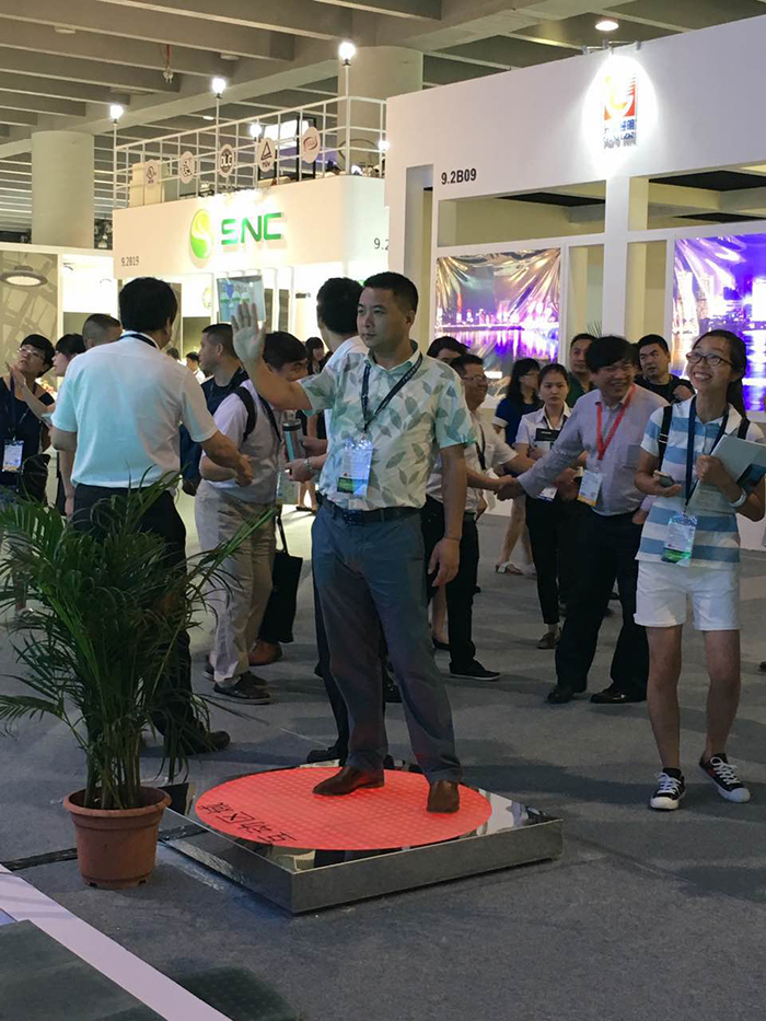 展會(huì)上,勇電照明此次推出的“智能化燈光互動(dòng)控制”技術(shù)引起了很多新老客戶(hù)的關(guān)注,在智能燈光互動(dòng)體驗(yàn)區(qū),人們站在探測(cè)器前方,通過(guò)移動(dòng)手掌來(lái)控制LED屏上動(dòng)畫(huà)的顯示,還可以站在地磚屏上,通過(guò)人體的移動(dòng)來(lái)帶動(dòng)地面燈光的走勢(shì),這種可單人可多人同時(shí)參與的新穎互動(dòng)模式吸引了眾多觀眾前來(lái)體驗(yàn),使人們更近距離的感受到智能燈光所帶來(lái)的科技魅力,成為展會(huì)上一大亮點(diǎn)。