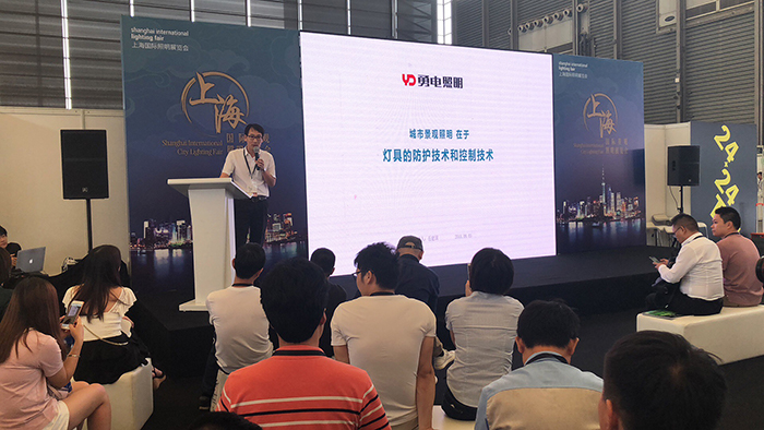 展會期間,勇電積極參與行業(yè)交流活動,圖為勇電研發(fā)副總監(jiān)岳建國在24X24Talk論壇上發(fā)表《城市景觀照明在于燈具的防護(hù)技術(shù)和控制技術(shù)》演講。