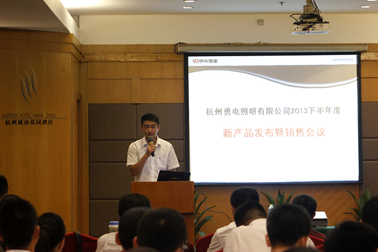 2013年7月28日,杭州勇電照明有限公司以主題為“勇電照明2013年下半年新產(chǎn)品發(fā)布暨銷售會議”在杭州城市花園酒店拉開了帷幕。參加會議的有勇電照明公司領(lǐng)導、代理商、各分公司代表及銷售人員。
