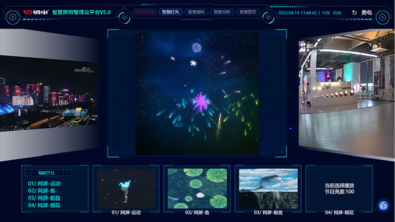 智慧燈光控制板塊是基于人工智能技術(shù)精細(xì)化調(diào)整節(jié)目樓宇亮度,同時可對裙樓燈光進(jìn)行集中精準(zhǔn)控制,可預(yù)設(shè)多種燈光模式,并可結(jié)合人工智能算法實(shí)現(xiàn)燈光的同步聯(lián)動。同時也能為管理者提供多視角觀看體驗(yàn),更好地進(jìn)行燈光秀管理。